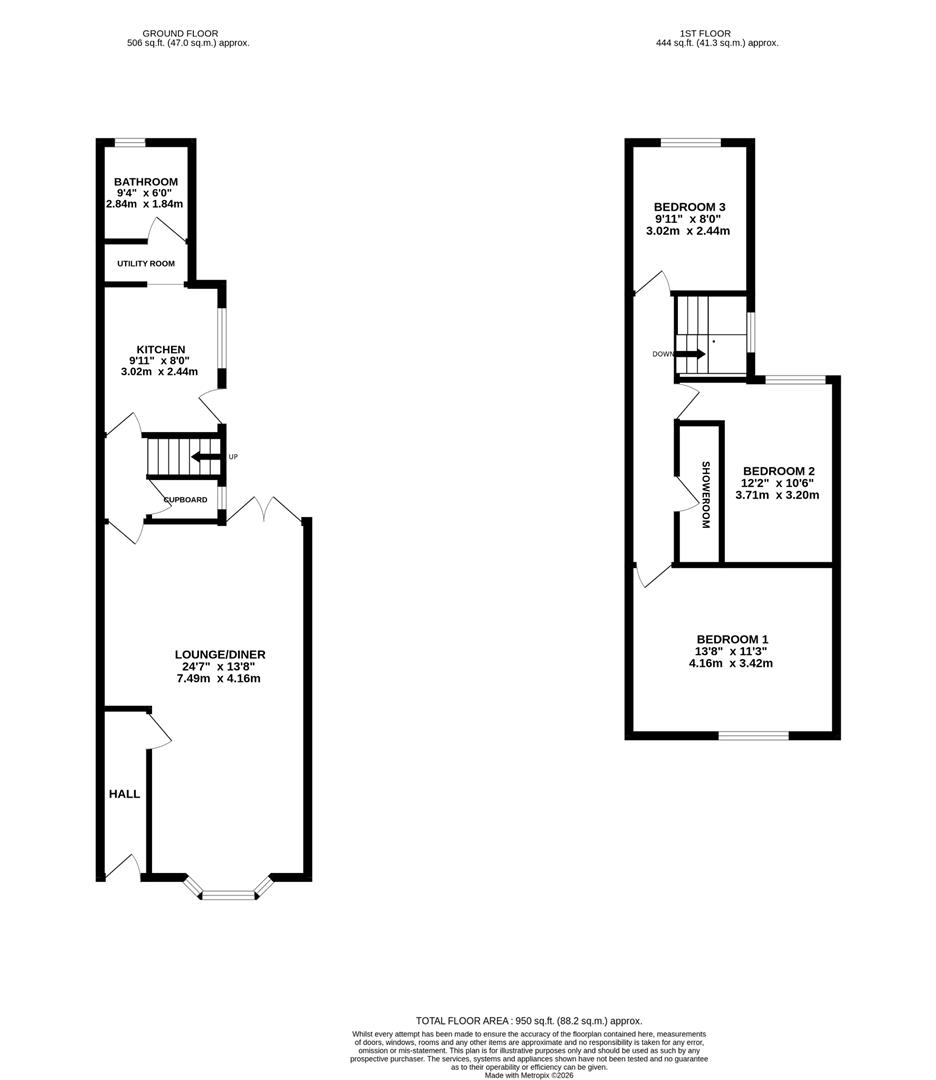 You are welcomed into the home via an entrance hall way, with a door to access the downstairs accommodation. The bright and spacious open plan living/dining room provides ample space for both living and dining furniture, as well as enjoying a bay window to the front, and patio doors out to the rear garden. A further hallway provides access to an understair storage cupboard, staircase rising to the first floor and the kitchen. The kitchen is fitted with a modern suite, featuring both eye and base level units, an integrated oven, hob, microwave and space for a fridge freezer. Further appliances can be housed in the adjoining utility space. The family bathroom is positioned to the rear of the property and fitted with a bathtub, hand wash basin and low level WC. From the first floor landing you have access to three generous bedrooms, two of which boast a characterful feature fireplace, and an additional family shower room.