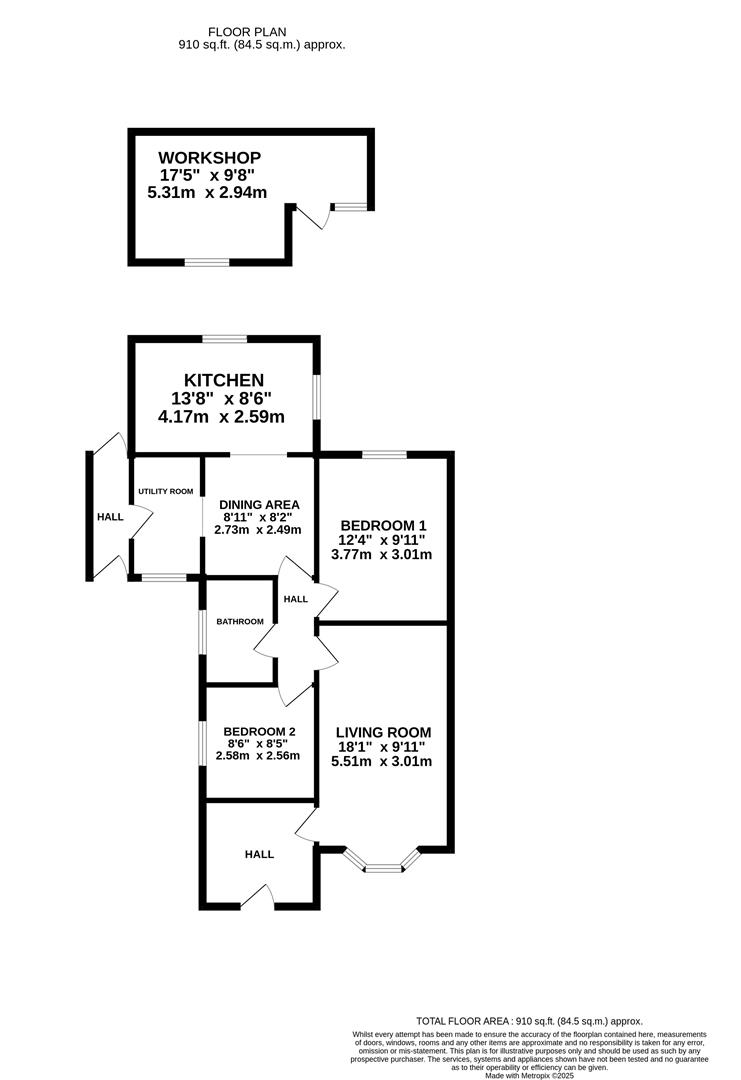 Upon entry, you are welcomed into the spacious entrance hall, from which the living room is accessed. The living room offers ample space for furniture and benefits from a large bay window overlooking the front aspect, allowing plenty of natural light to fill the space. To the rear, the kitchen has been thoughtfully extended to create an open-plan feel. It is fitted with a range of eye and base-level units, along with an integrated oven, hob, and extractor fan. Additional appliance space is available in the adjoining utility room. Both bedrooms are generous doubles, with the bathroom conveniently located between them. The bathroom comprises a three-piece suite including a bathtub with shower over, low-level WC, and pedestal wash hand basin.
