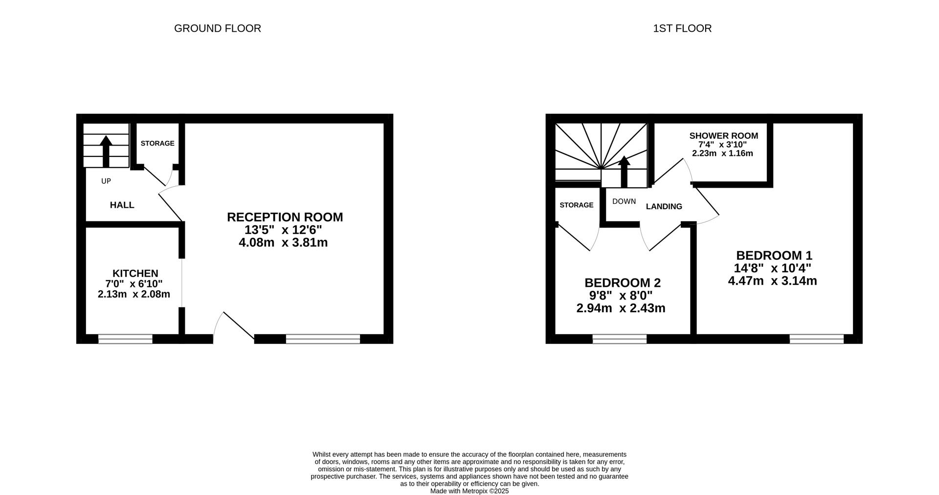Upon entry you are welcomed into the reception room where both living and dining furniture can be stored. The kitchen is fitted with a range of eye and base level units along with an integral oven, hob and extractor. There is also space for an under the counter fridge freezer. Further appliances can be stored within the storage cupboard within the hallway. Ascending to the first floor landing you are able to access both double bedrooms and the shower room. The shower room is fitted with a three piece suite including a shower cubicle, low level WC and wash hand basin. Completing the accommodation is the garden that offers a generous sized lawn with a timber storage shed and brick built lean to. The garden backs onto the rolling countryside beyond that is farmer owned.