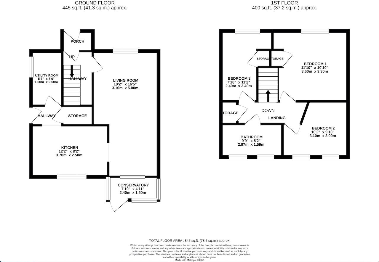 The spacious kitchen overlooks the rear garden and is fitted with a range of eye- and base-level units, along with an integrated oven, hob, and dishwasher. A separate utility room provides additional storage and space for a fridge freezer. To the rear, a conservatory completes the ground floor accommodation.